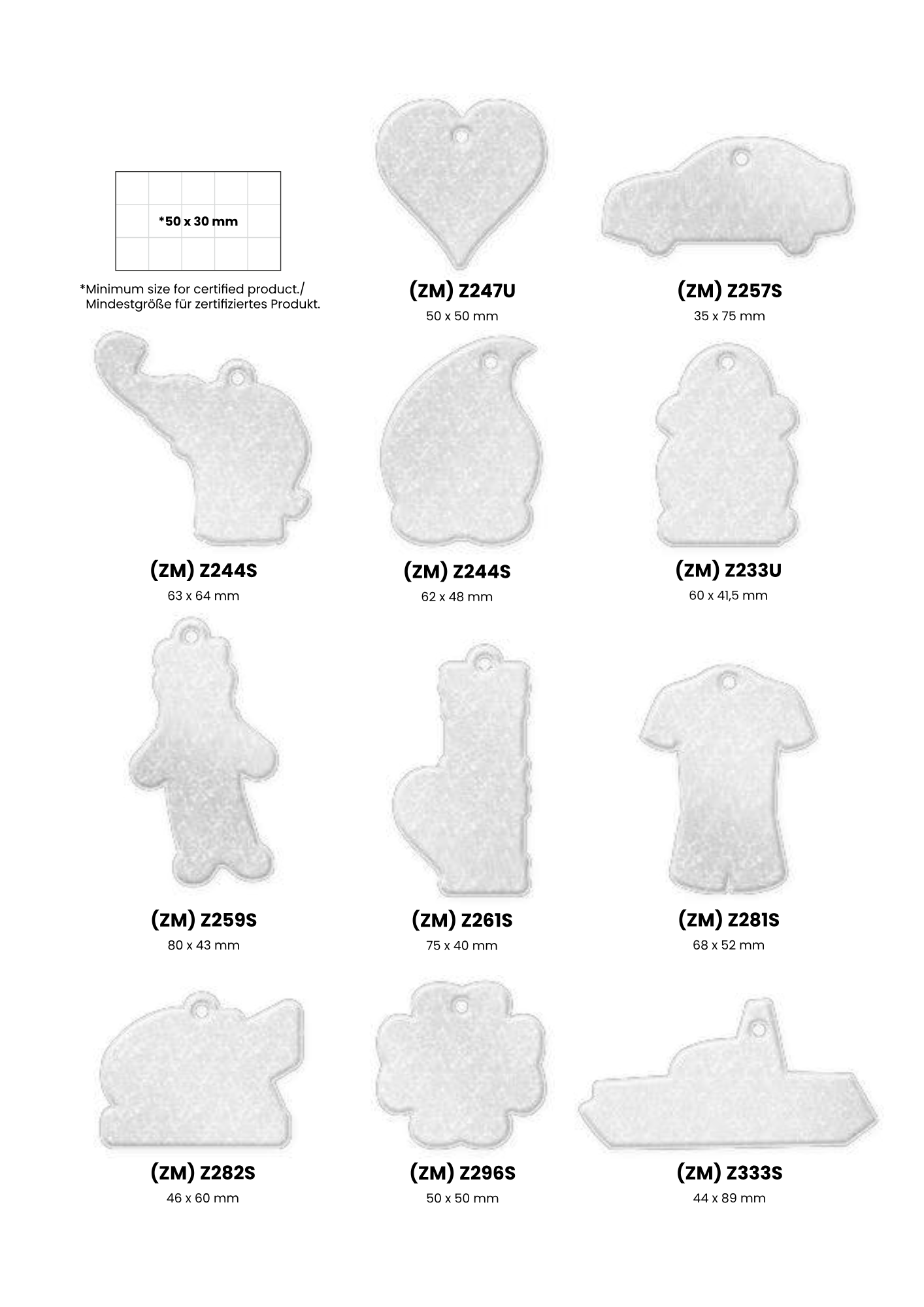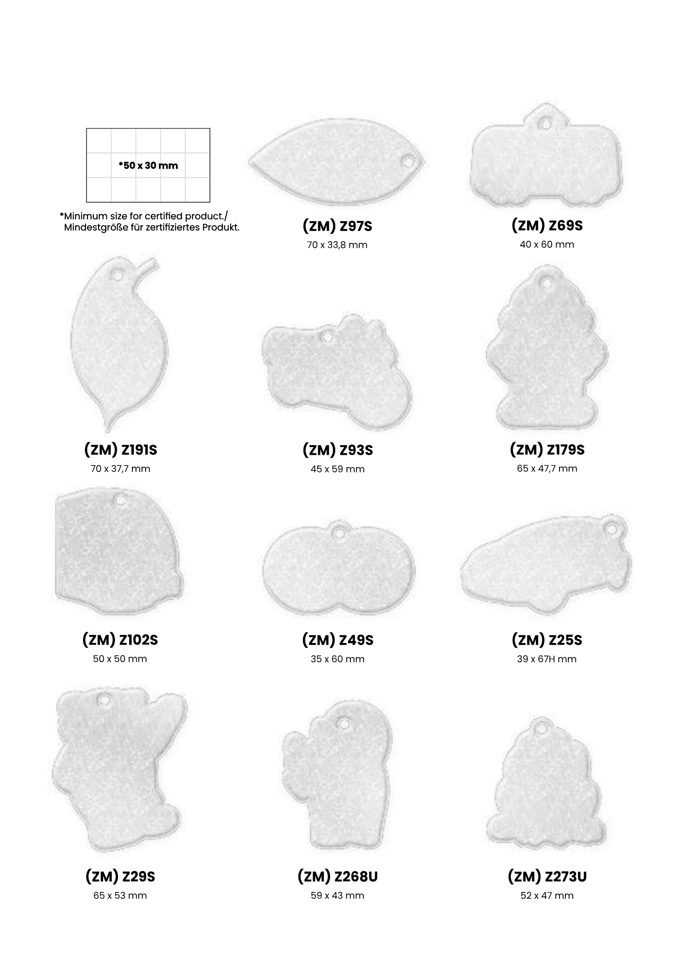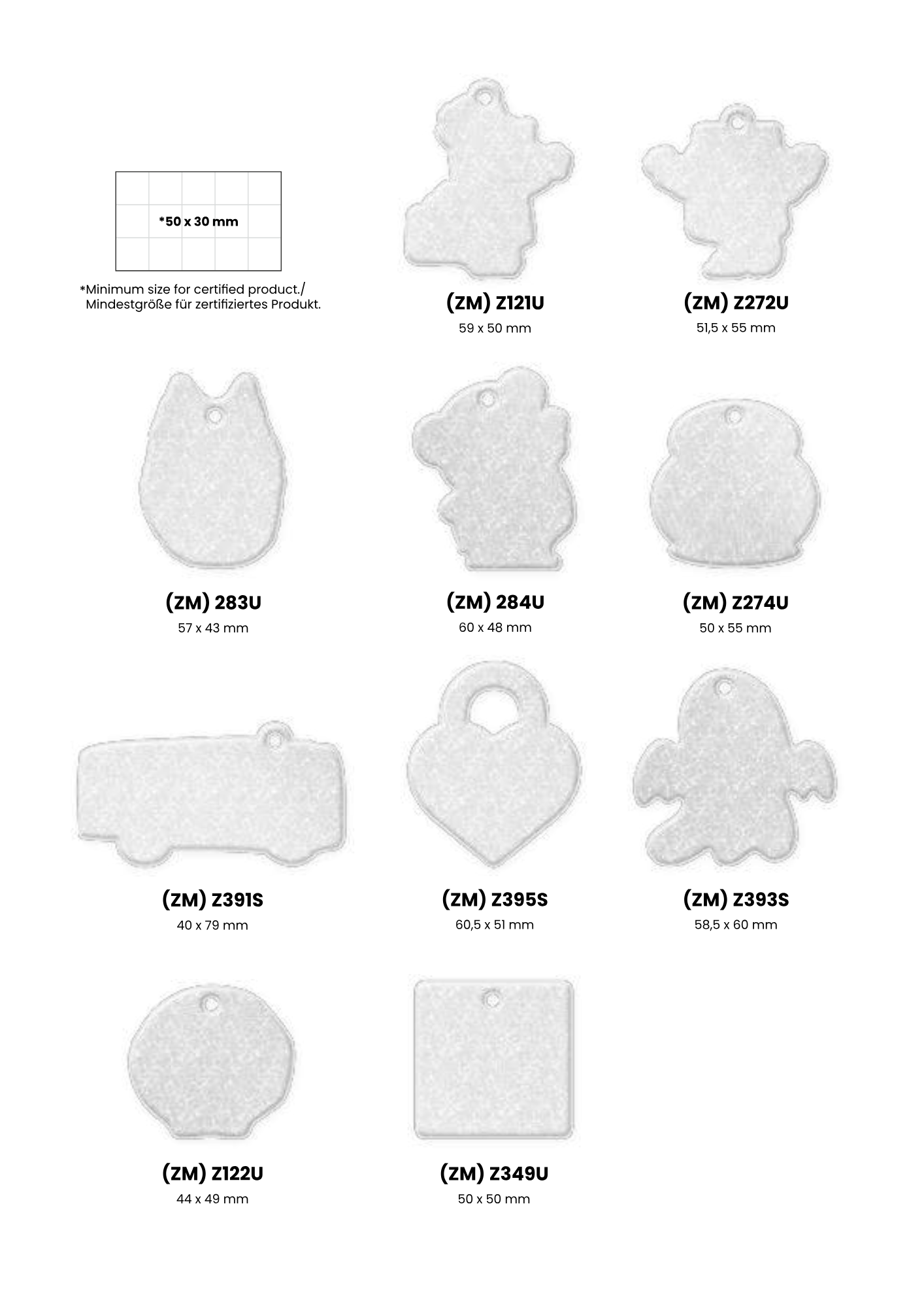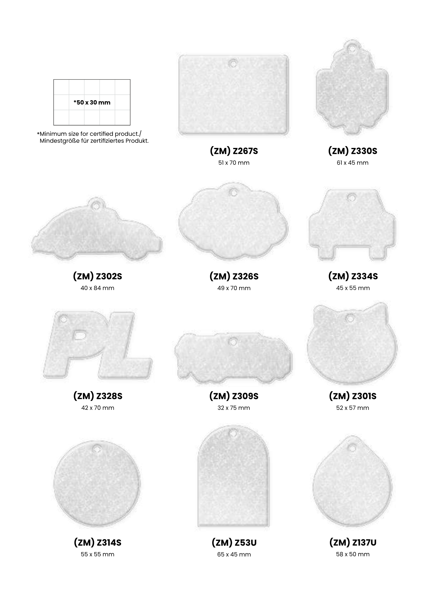 Heijastimesta on valmiita malleja joista kuvat tuotteista, oman muodon tekeminen kustantaa 150 €
