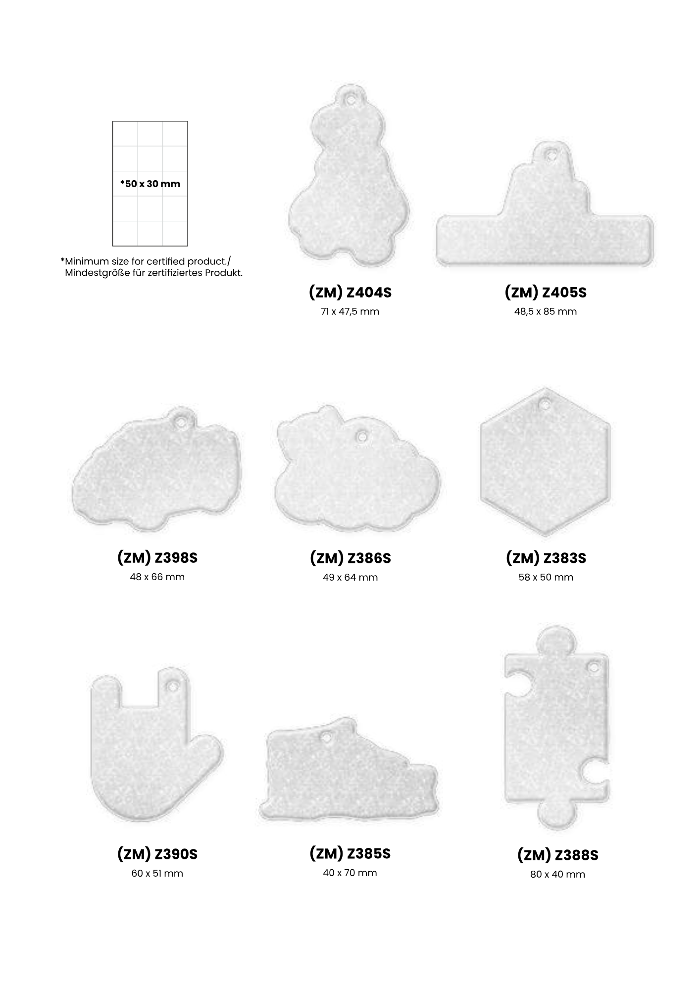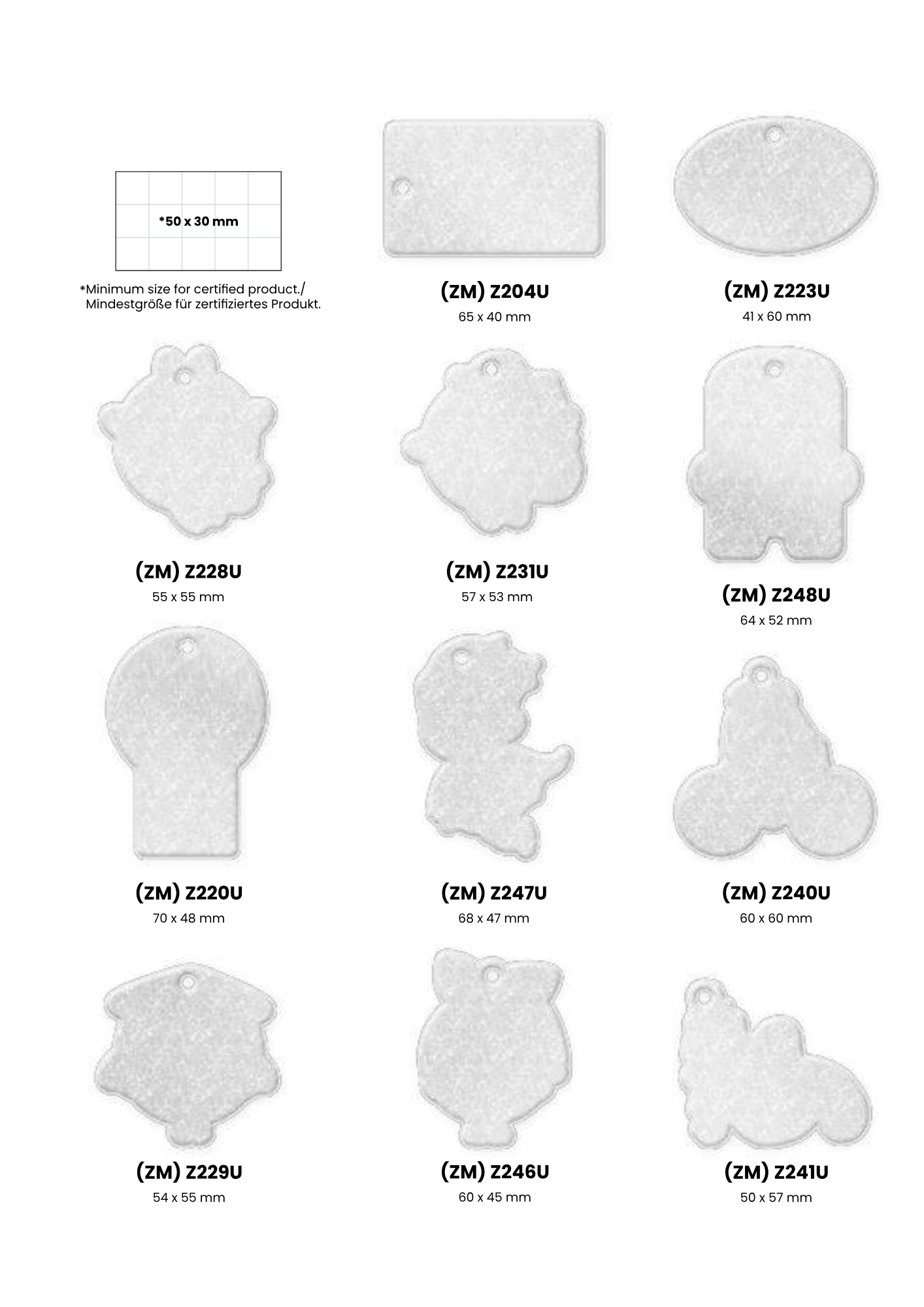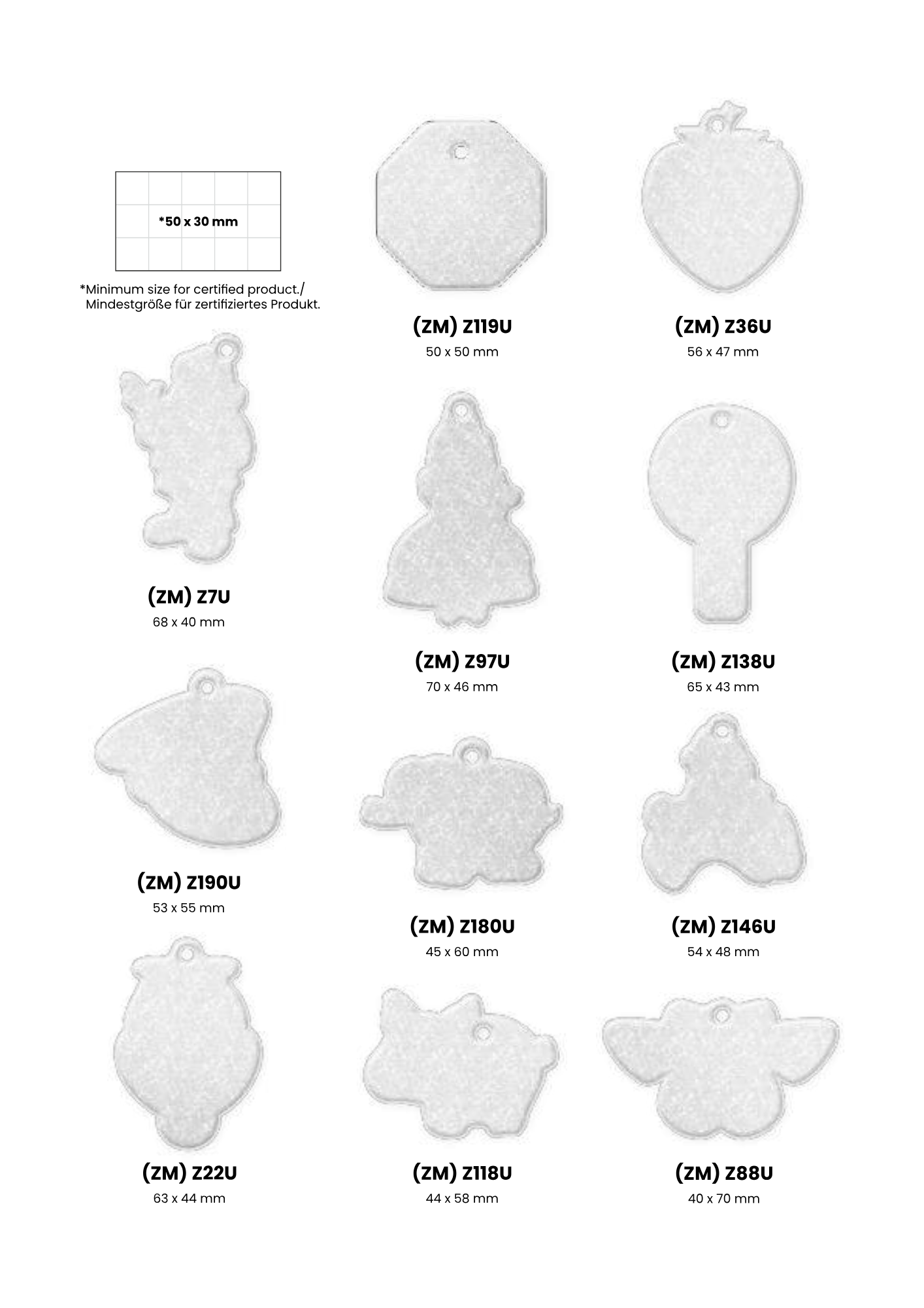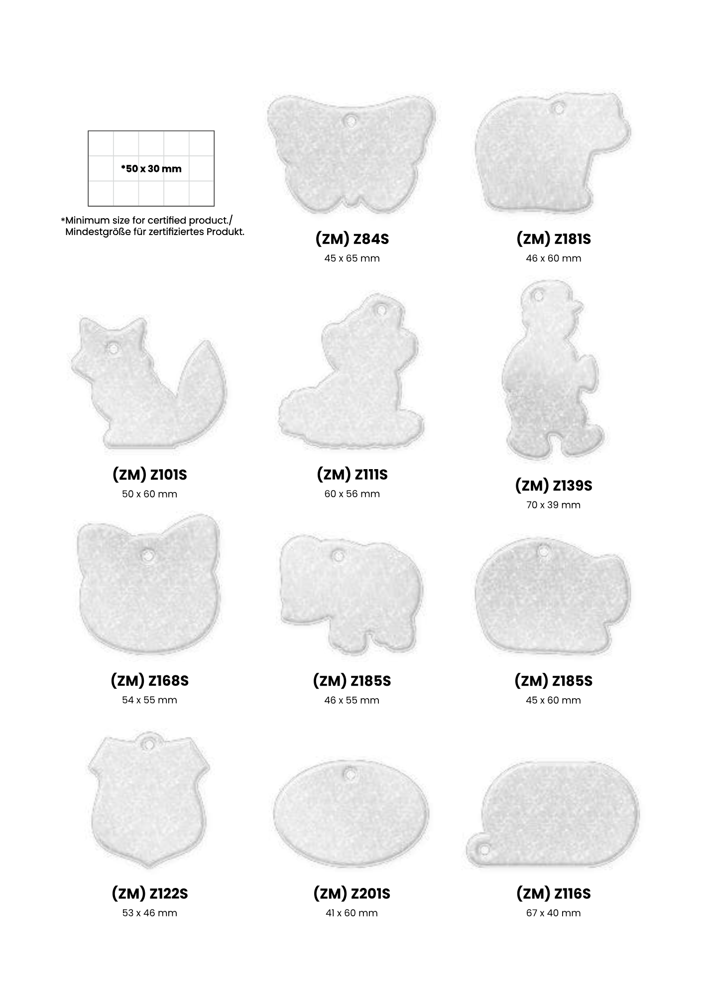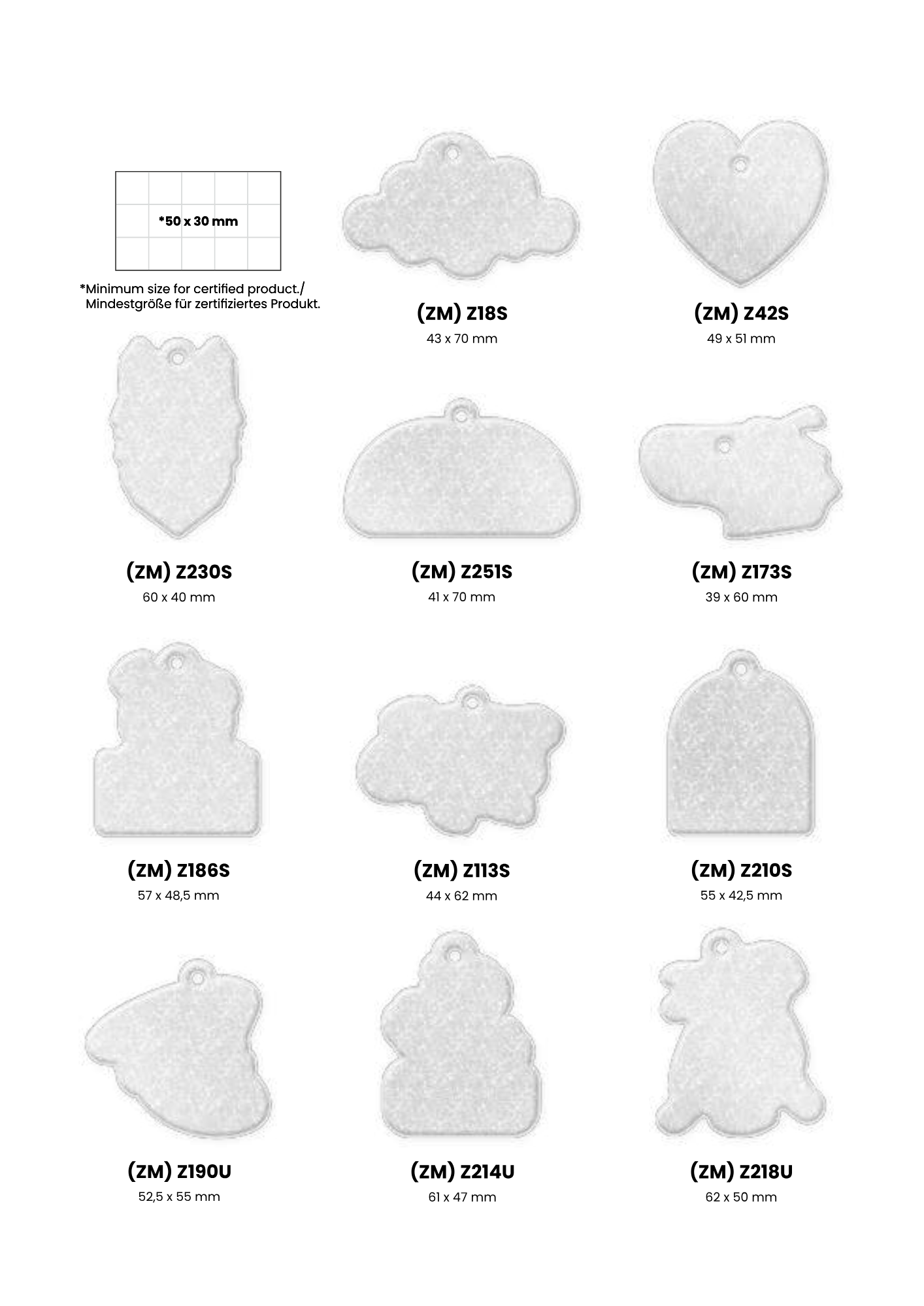 Heijastimesta on valmiita malleja joista kuvat tuotteista, oman muodon tekeminen kustantaa 150 €
