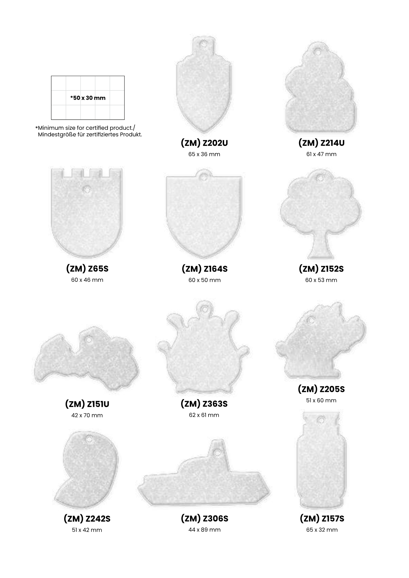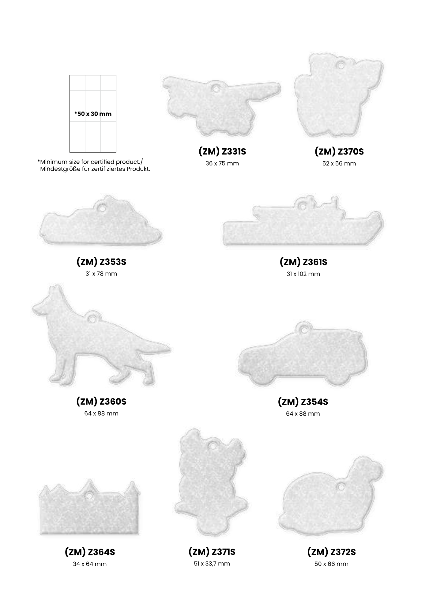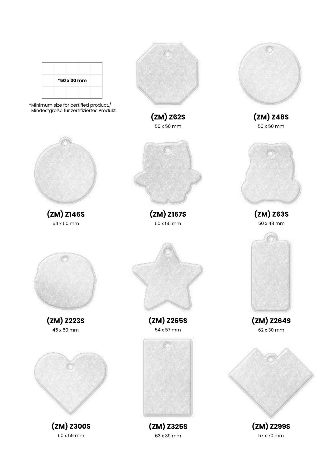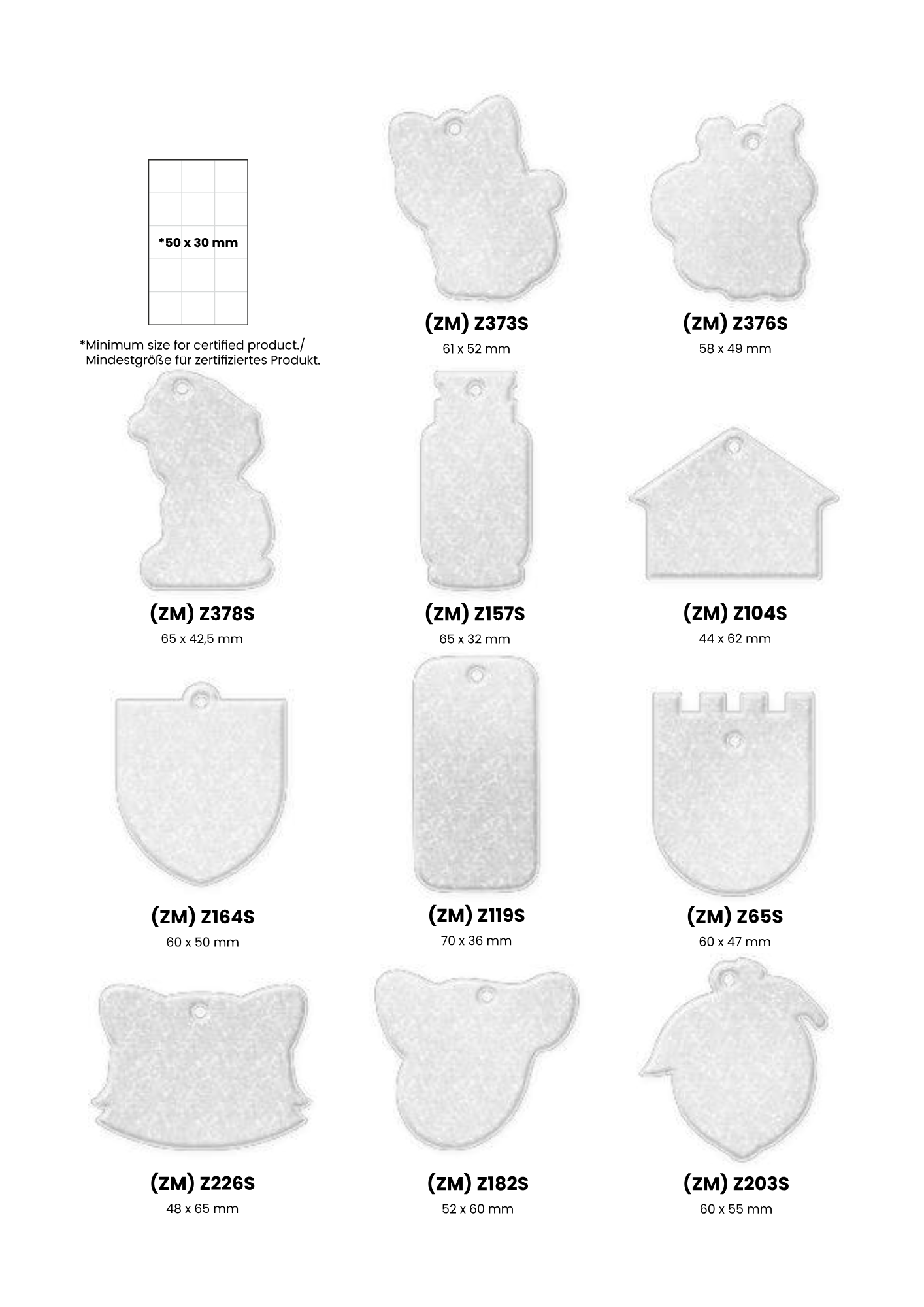 Heijastimesta on valmiita malleja joista kuvat tuotteista, oman muodon tekeminen kustantaa 150 €