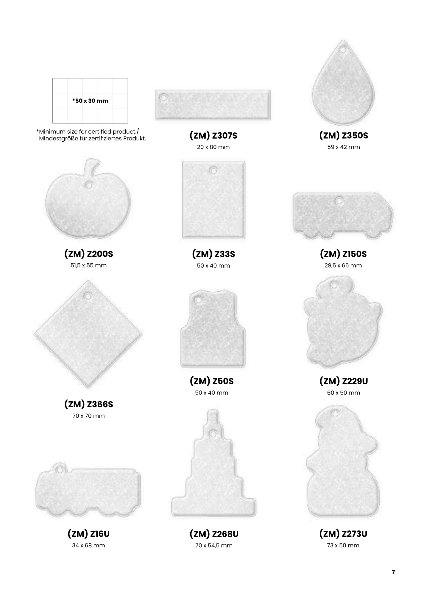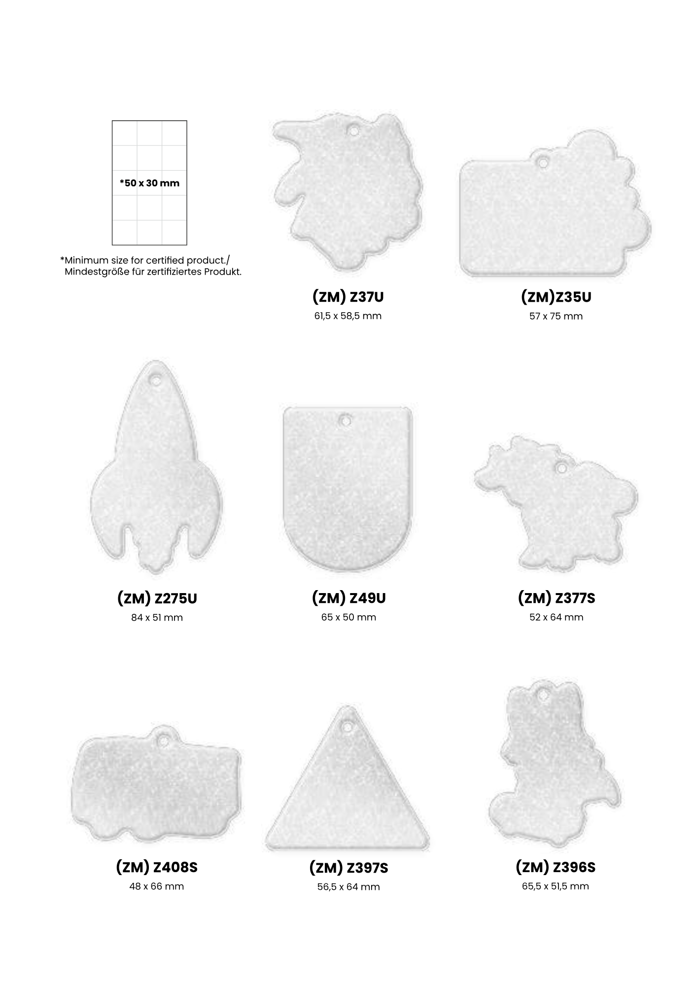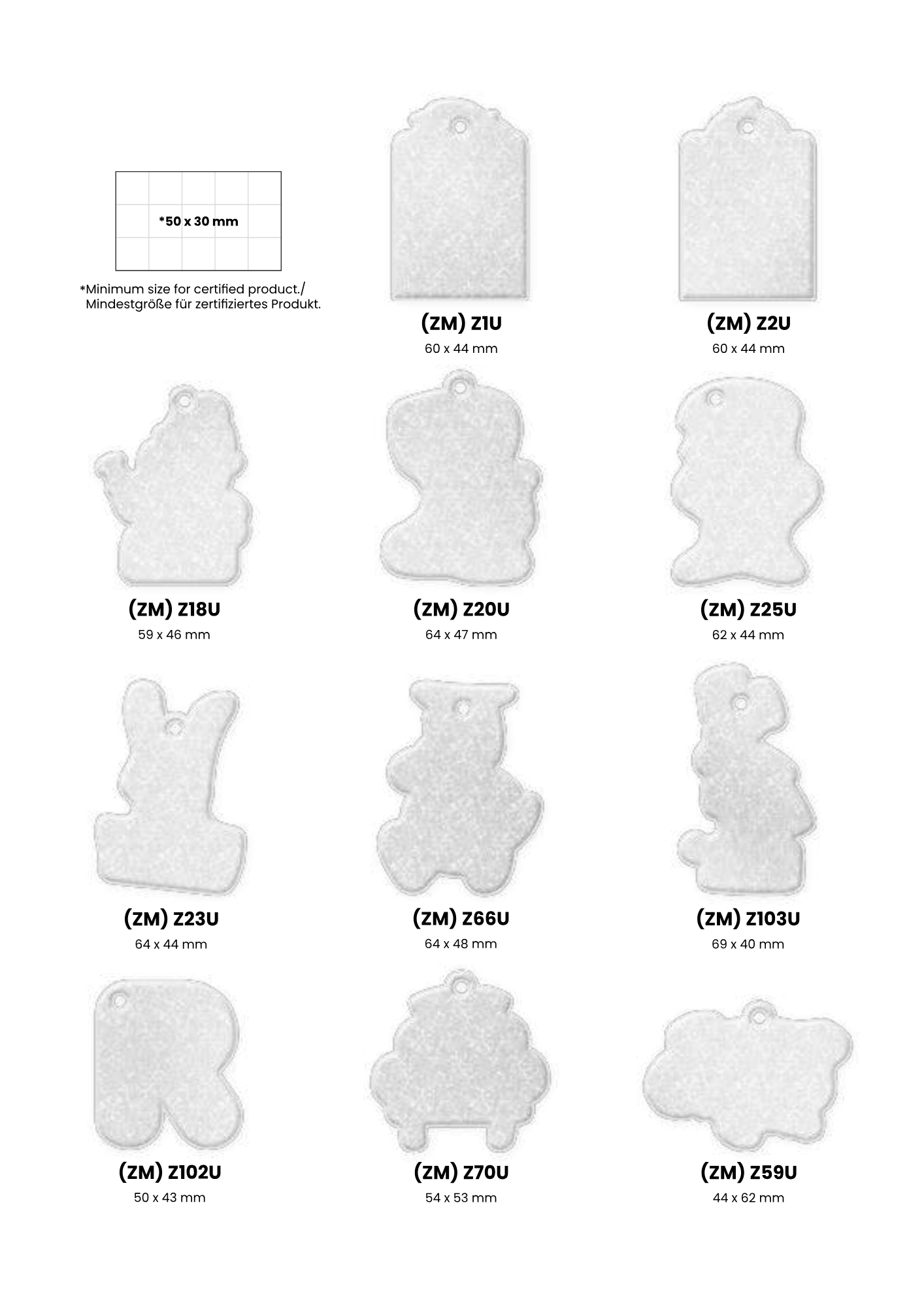 Mitat: n. 55 x 70 mm (riippuen muodosta)