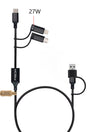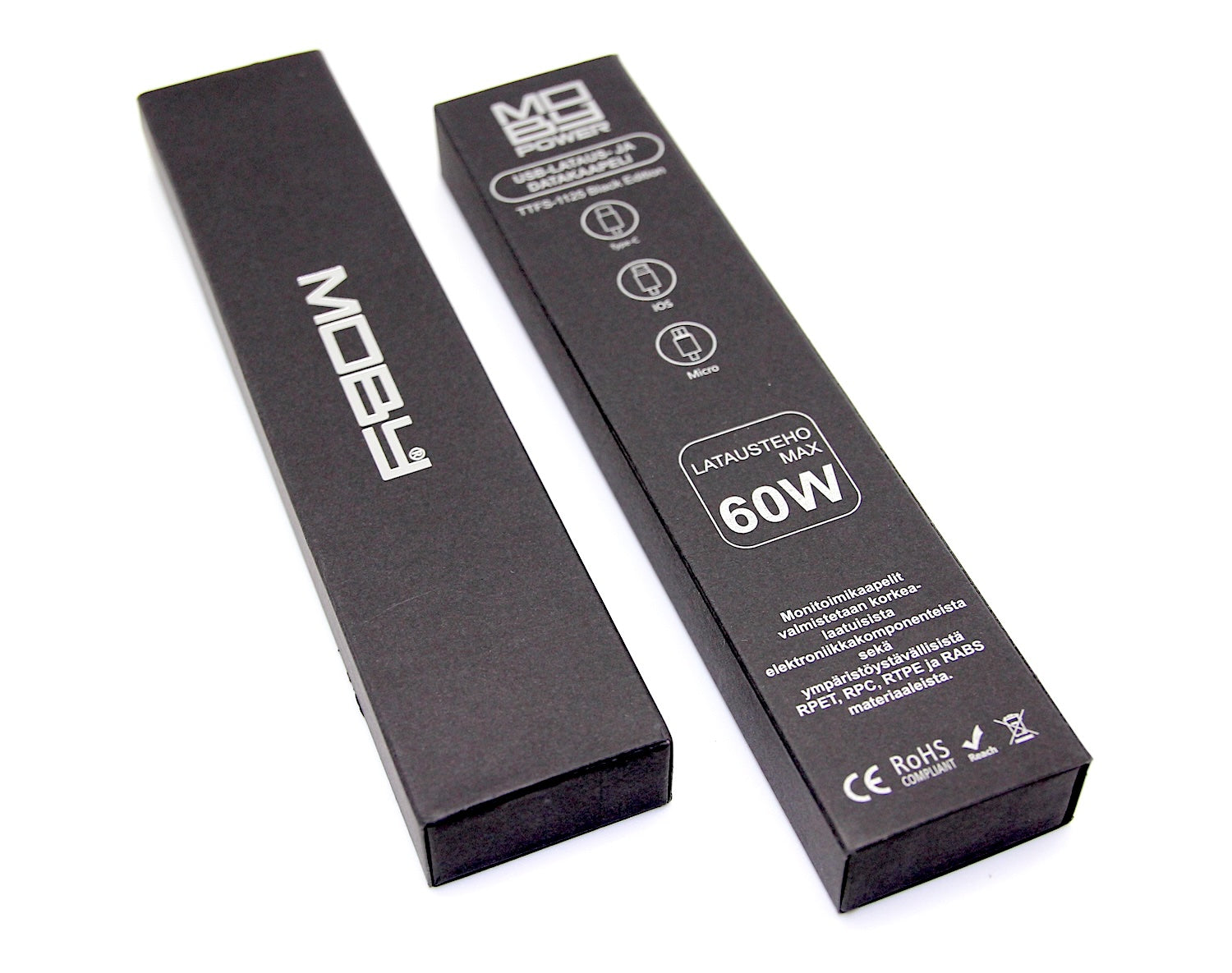 120 cm pikalatauskaapeli useilla eri liittimillä ja datansiirto ominaisuudella. Kaapeli tulee pahvipakkauksessa.