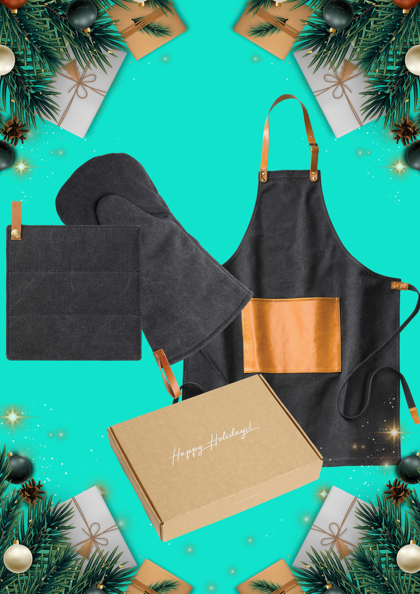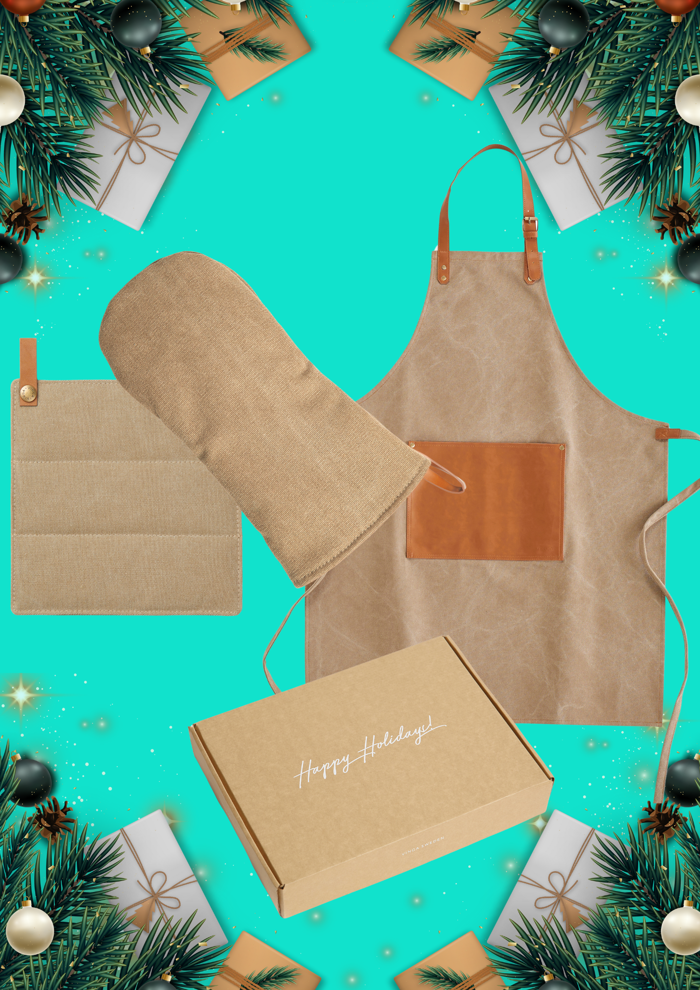 Tee keittiöhetkistä tyylikkäämpiä ja huolettomampia! Tämä huolella koottu lahjasetti sisältää kolme yhteensopivaa osaa: