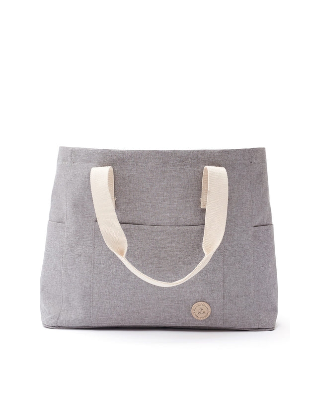 Tyylikäs olkalaukku rantalaukuksi tai shoppailuun. Tilava, kahdella kantokahvalla, vetoketjutasku ja kolme ulkolokeroa. Nopeasti kuivuva.