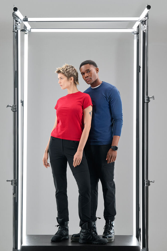 Neljänkertainen, elastinen kaularesori tuntuu miellyttävältä ja säilyttää istuvuutensa myös toistuvan pesun jälkeen. Vasemmanpuoleiseen sisäsaumaan on lisätty tasku RFID-tunnisteen ompelua varten, mikä tekee paidasta ihanteellisen työvaatekäyttöön ja erilaisiin tunnistejärjestelmiin. Tuote toimitetaan kompostoitavassa pakkauksessa, mikä tukee ympäristöystävällisiä valintoja. Materiaalien ja tuotantoprosessin turvallisuuden varmistaa Oeko-Tex 100 -sertifikaatti.